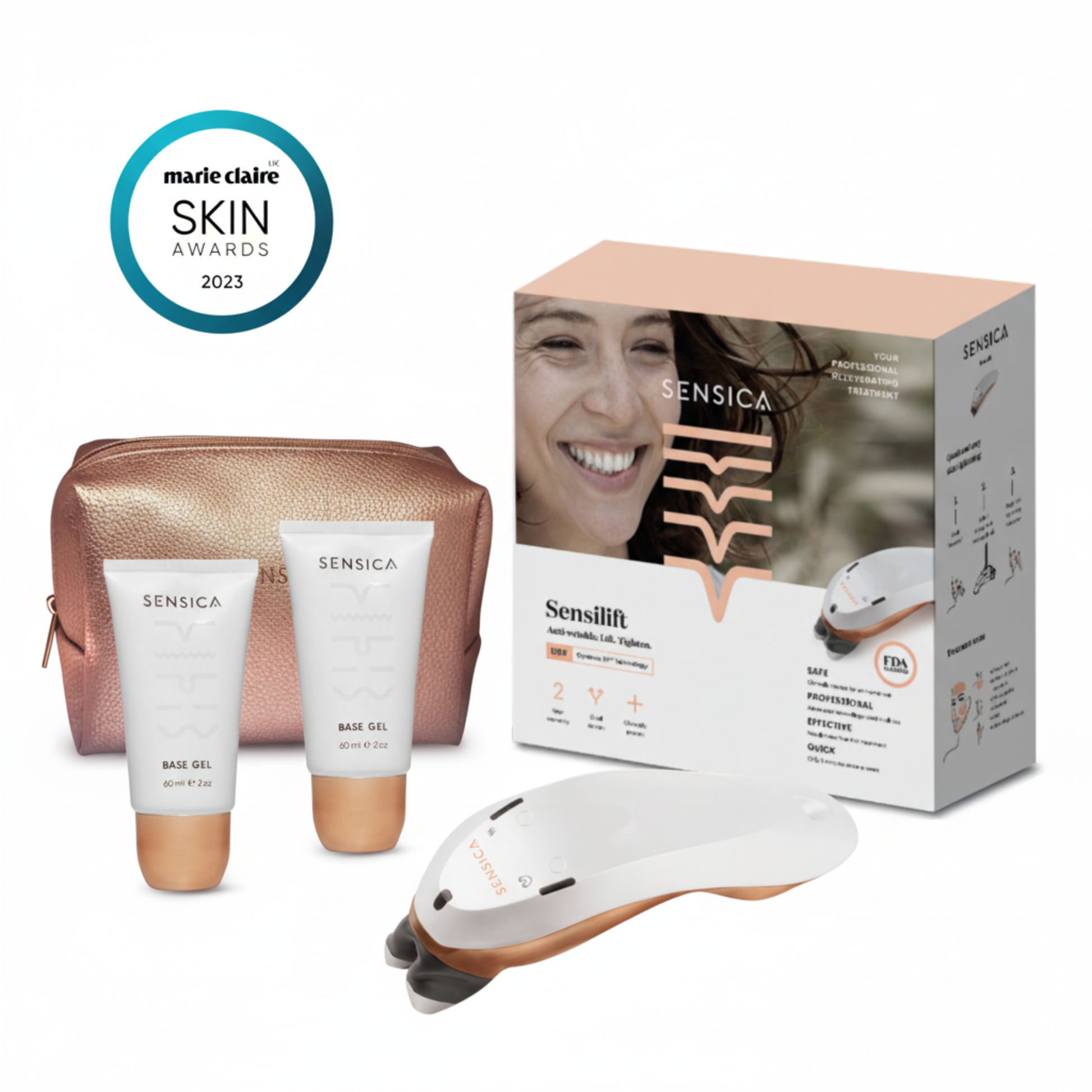 Sensilift is a clinically tested, FDA-cleared radio frequency (RF) anti-aging device designed to reduce wrinkles, improve skin texture, and boost collagen—all from the comfort of your home. It delivers salon-quality results using professional-grade technology compacted into a sleek, easy-to-use handheld device.